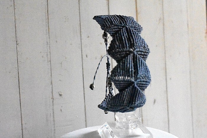 Bracelet micro-macramé couleur Jean brut en fil polyester cirée, il va à tous les poignés grace à sa fermeture réglable. Fabriqué en france fait main.