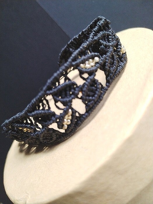 Bracelet micro-macramé couleur noir en fil polyester cirée, il va à tous les poignés grace à sa fermeture réglable. Fabriqué en france fait main.