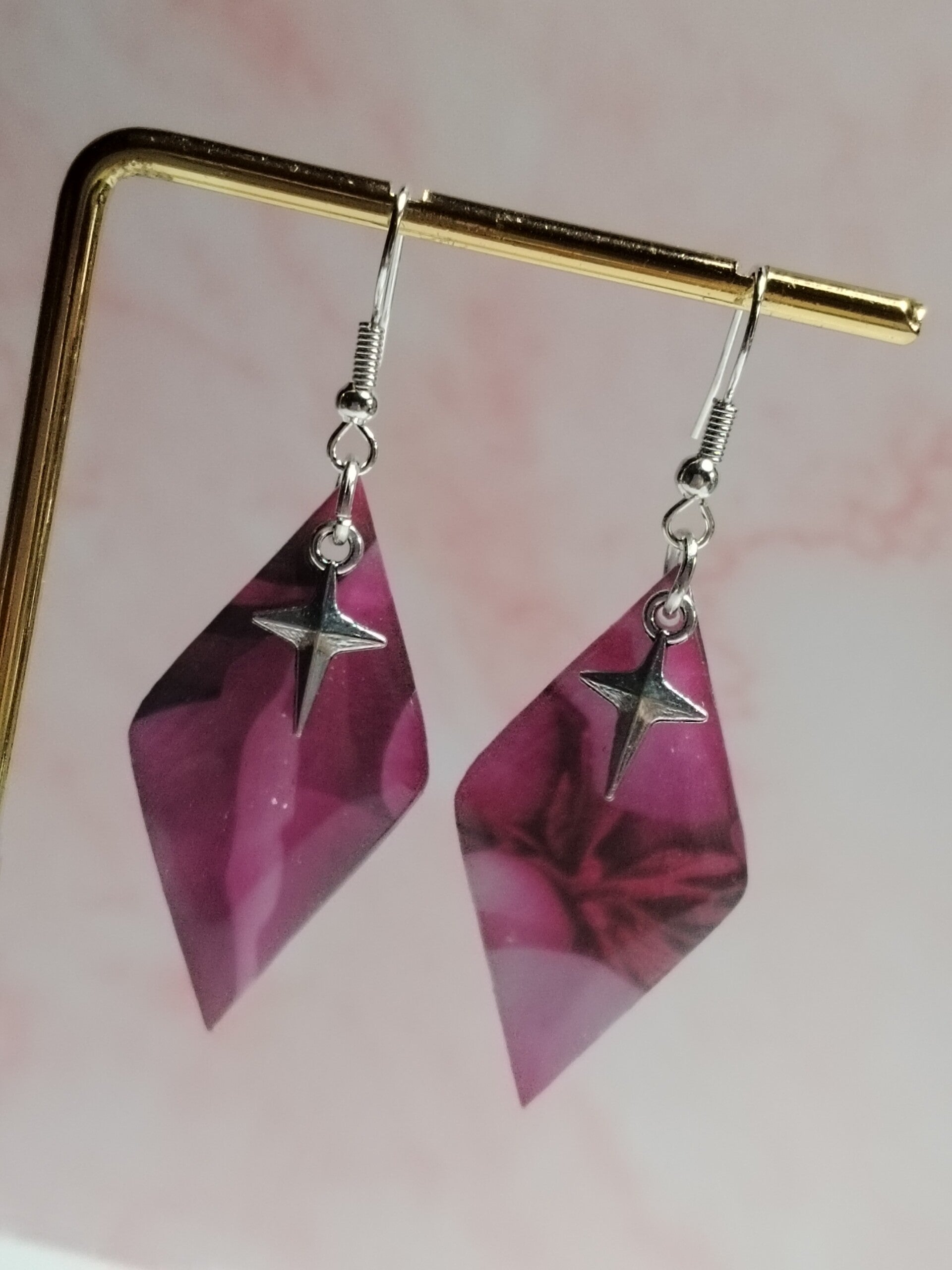 Boucles d'oreilles fantaisie création artisanal fait main. Modèle unique très légère ce porte en toute occasion.