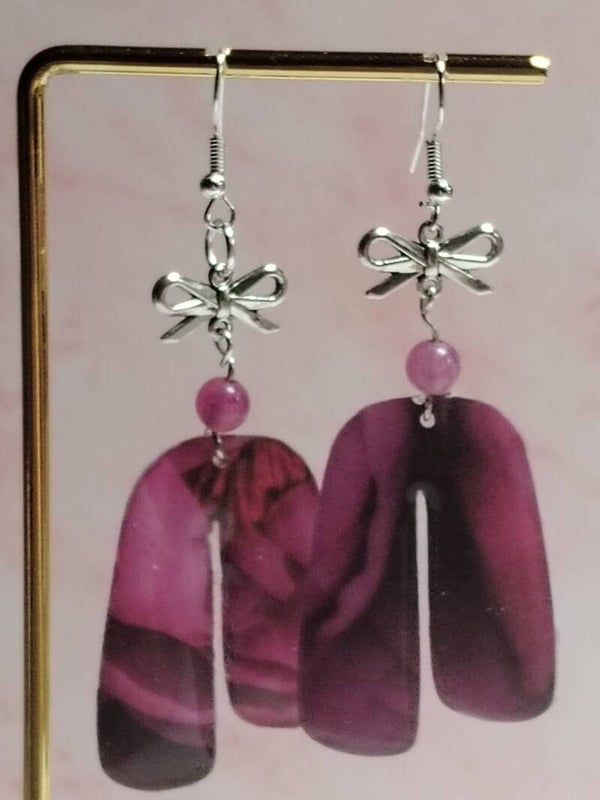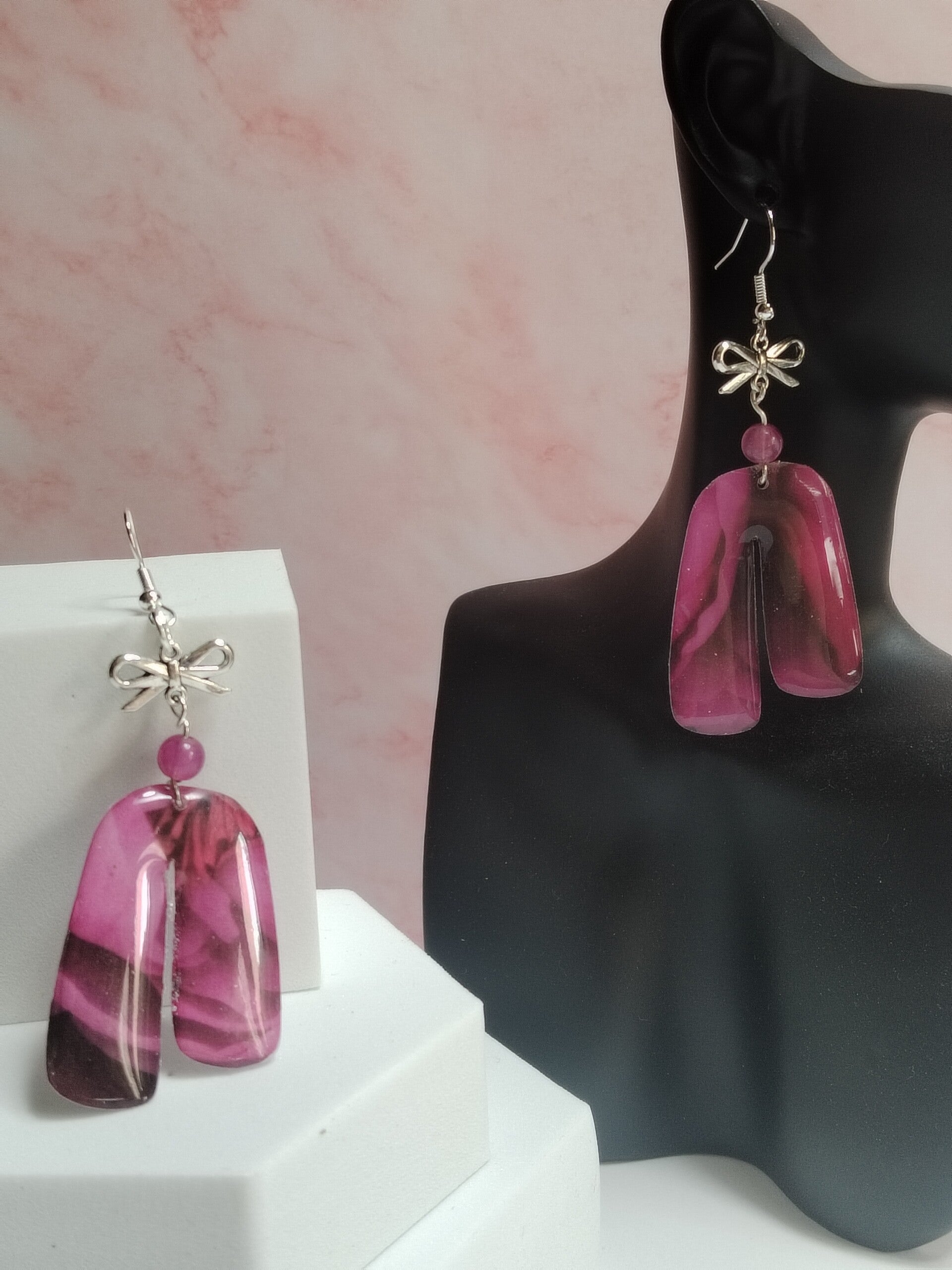 Boucles d'oreilles chic en époxy et acier inoxydable, et perle de verre.