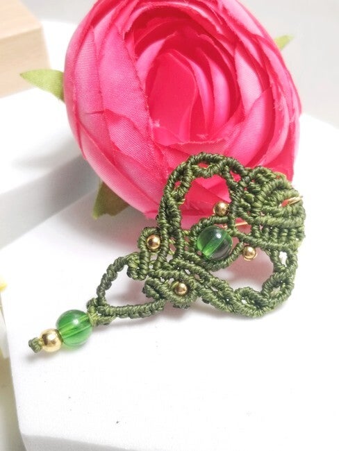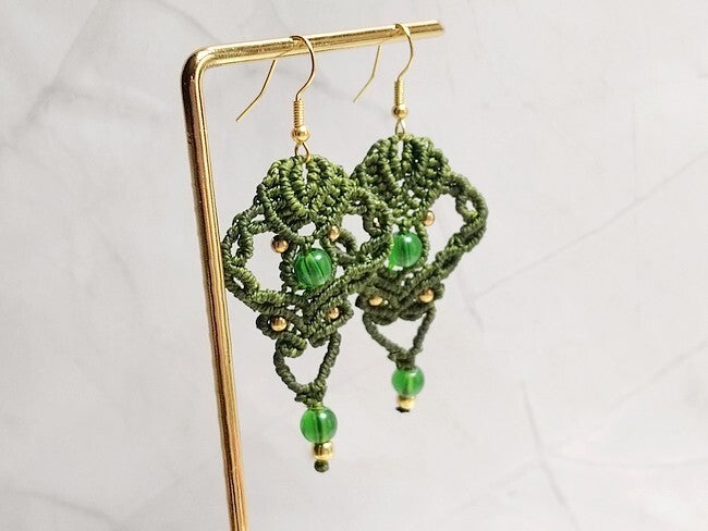 Boucles d'oreilles micro macramé fantaisie bohéme.Modèle unique fabriqué main en fil polyster enduit et acier inoxydable.
