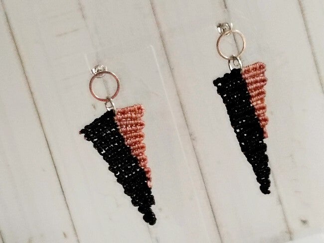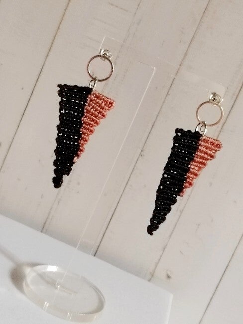 Boucles d'oreilles micromacramé fantaisie en fil polyester et acier inoxydableL