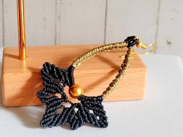 Jolies boucles d'oreilles bleu orage et dorée en fil polyester et acier inoxydable.